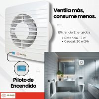 El extractor de baño GOLDMAN SERVICE de 100 mm está diseñado para mantener tu baño libre de humedad, condensación y malos olores de forma eficiente y silenciosa. Gracias a su temporizador regulable de 0 a 30 minutos, el ventilador continúa funcionando tras apagar la luz, asegurando una ventilación completa.