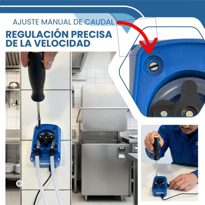 🟢 Dosificación precisa hasta 120 ml/min – Ideal para lavavajillas y lavadoras industriales en entornos profesionales.