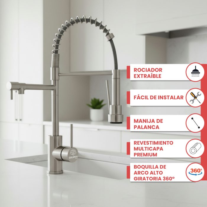 Descubre la combinación perfecta entre elegancia, funcionalidad y durabilidad con el Grifo de Cocina Extraíble GOLDMAN SERVICE.