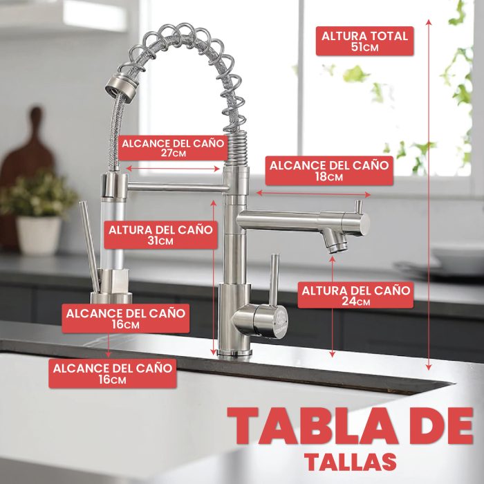 Acero Inoxidable 304 | 2 Modos de Agua | Instalación Rápida