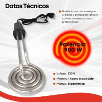 Con 900W de potencia real, ofrece calentamiento rápido y uniforme sin necesidad de soplete ni fuego.